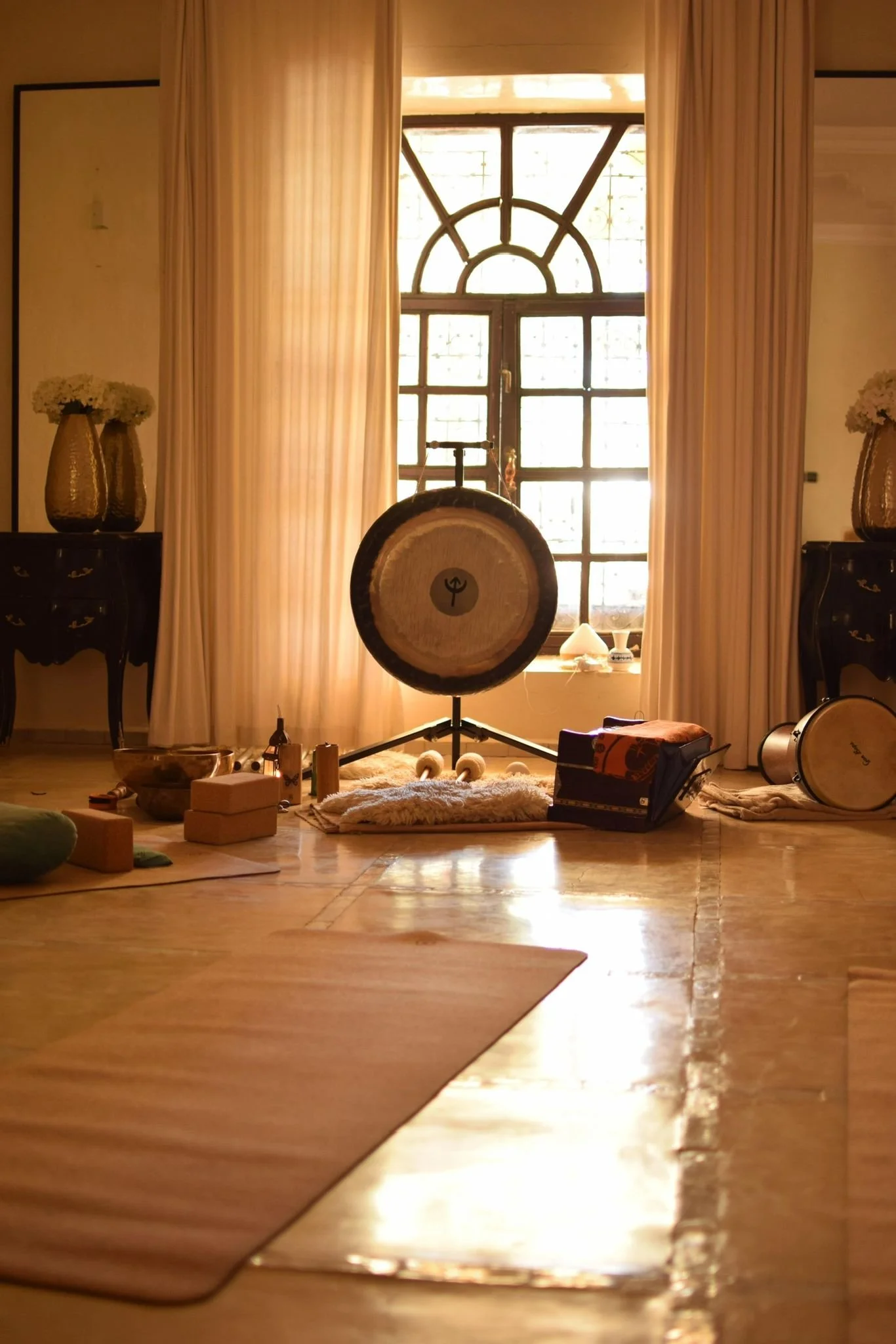 We then move into a restorative sound bath, an immersive experience using gongs, singing bowls and chimes. This final practice supports deep relaxation, integration and release, allowing the intentions of the day to settle on a cellular level.
